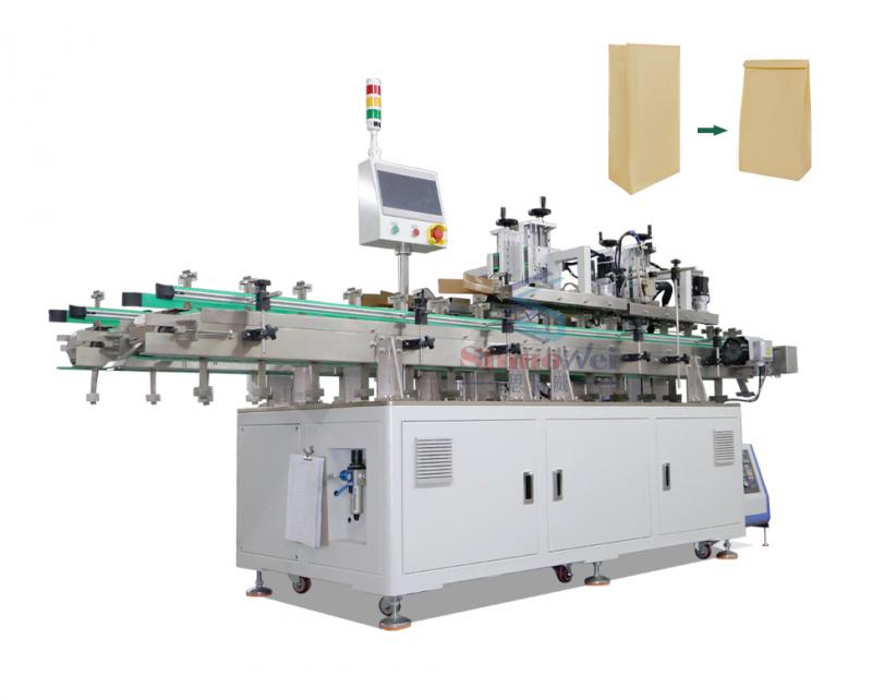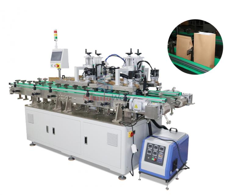 Food packaging bag edge folding and sealing machine is specifically designed for sealing food packaging bags. It achieves a secure and reliable seal by applying hot melt adhesive after two folds. It is compatible with a wide range of food packaging bag sizes and offers high adaptability.